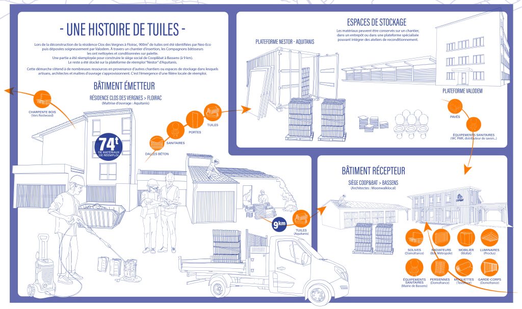La tuile illustre ici le processus impliqué pour conserver tout matériau de réemploi :