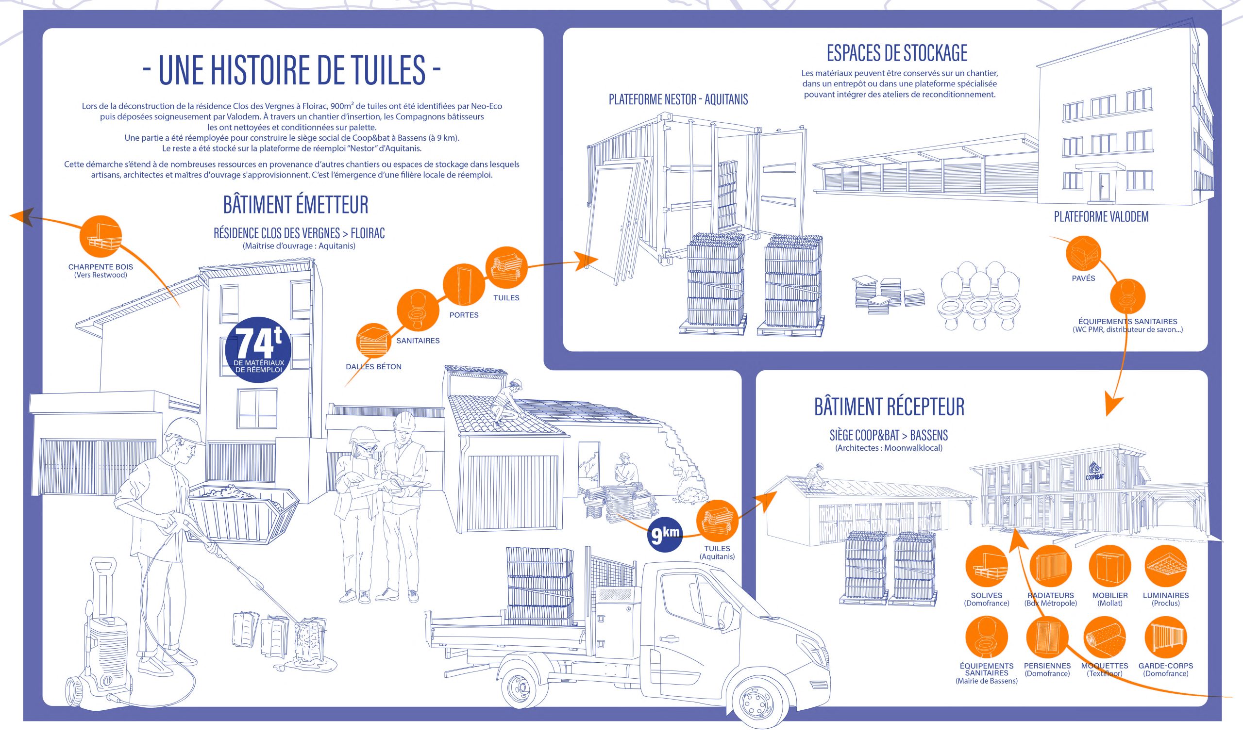 Merci à nos partenaires que sont Aquitanis, Neo-Eco, Coop&Bat, Les Compagnons Bâtisseurs, Valodem, R-Use, Nobatek, Domofrance, Bordeaux Métropole, pour leur implication qui a permis d’utiliser ce bel exemple de synergies.